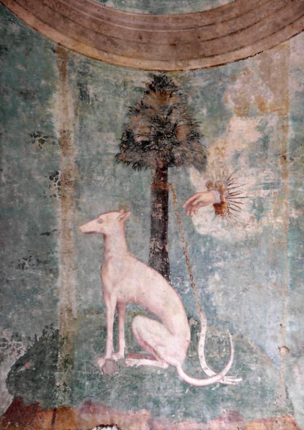 Segnaliamo infine, tra l’altro, la raffigurazione di una mano che scioglie un levriero dalla catena, simbolo della libertà portata dai duchi di Milano.