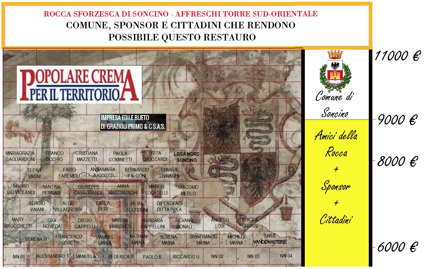 Un ringraziamento forte al Comune, agli Sponsor e a tutti i cittadini che hanno dato il loro contributo per il recupero degli affreschi della torre sud-orientale.