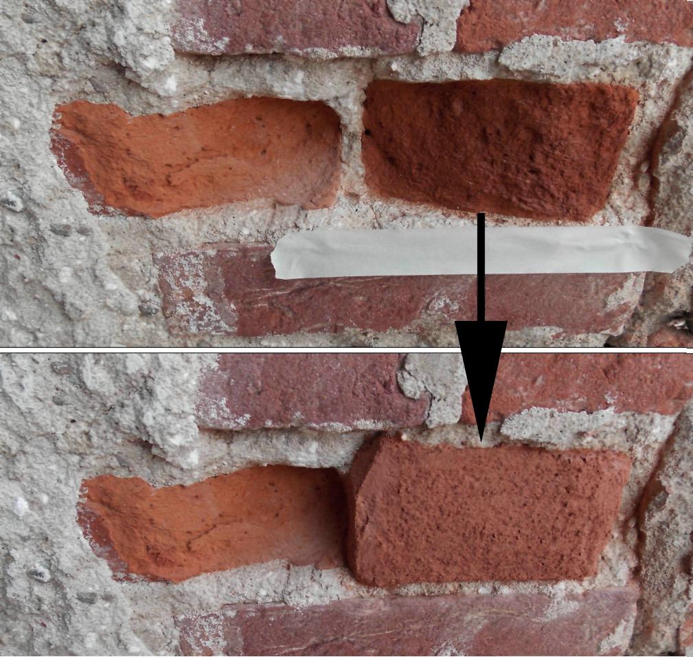 Ora vogliamo illustrarvi una curiosità: a lato degli affreschi il paramento murario presenta alcuni mattoni fortemente erosi, dei veri e propri buchi, e i fratelli Mariani, esecutori del restauro, si sono assunti gratuitamente l’onere di sistemare la cosa; non si può certo togliere il mattone rotto e sostituirlo con uno nuovo, perchè una simile operazione creerebbe uno scasso enorme: il filmato che presentiamo illustra l’interessante operazione, descrivendo ampiamente materiali e la tecnica.