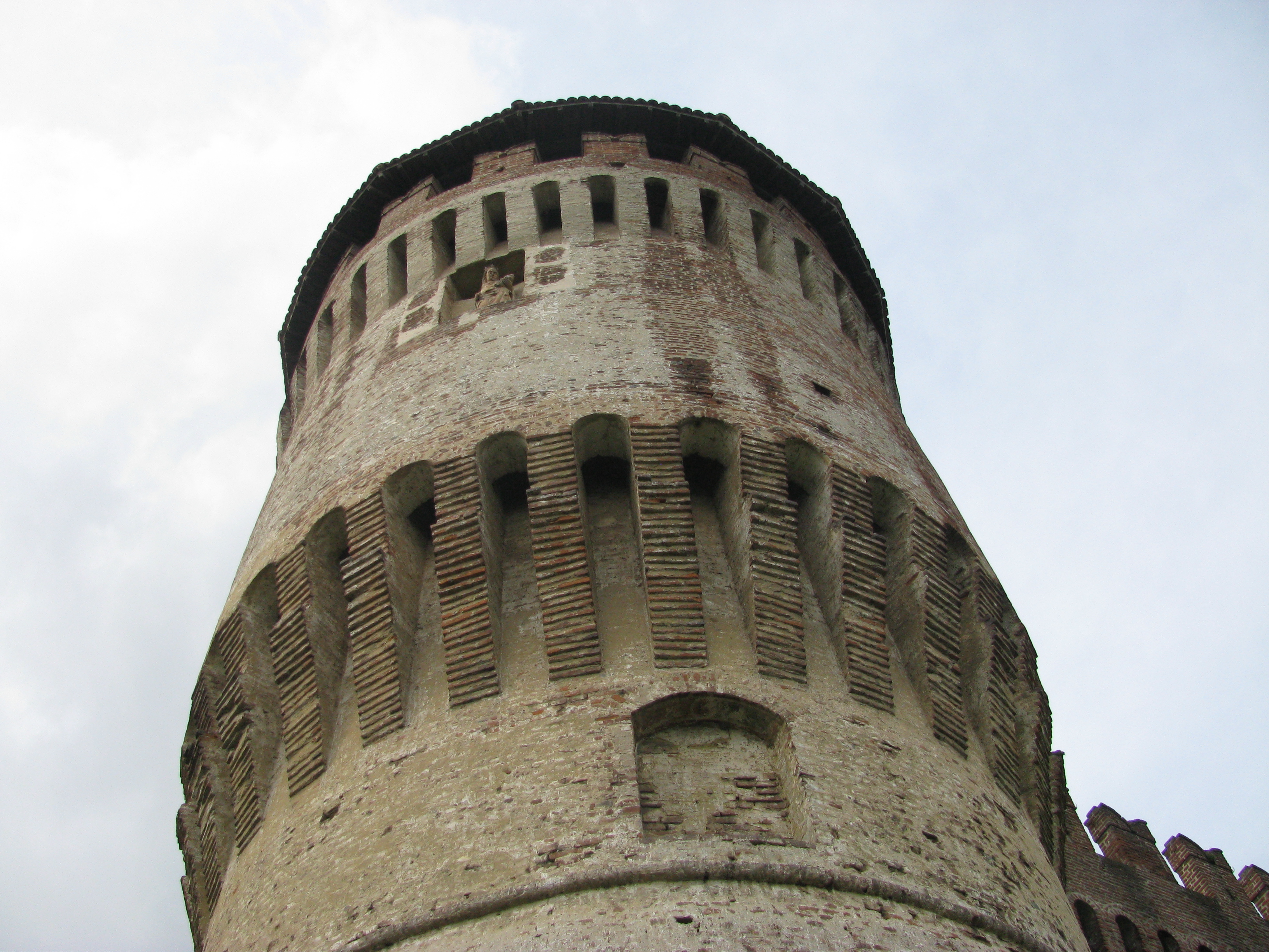 L’assaggio di oggi è una suggestiva visione della rocca presa sopra il fagiolo, sulla sommità del muro di controscarpa del fossato: accomodatevi, e orientate l’immagine dove volete, inquadrando il fossato occidentale e meridionale, ma anche il pendio del fagiolo, e la campagna…