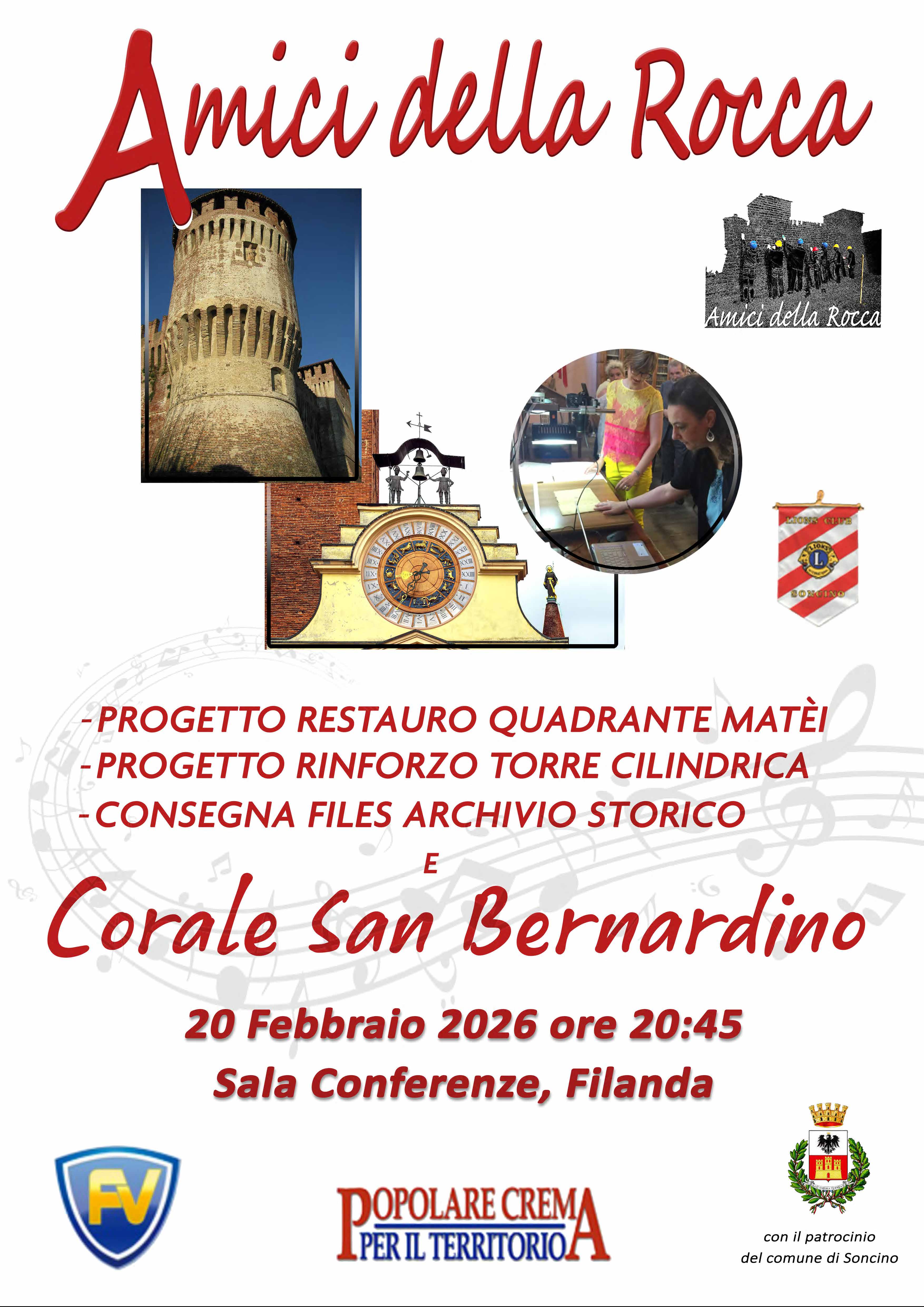 Innanzitutto verrà consegnato direttamente nelle mani del Sindaco Gabriele Gallina l’hard-disk con tutti i circa 25.000 files dell’Archivio Storico Soncinese. E’ stato un lavoro impegnativo portato avanti da un bel gruppo di AdR, guidati dall’archivista del Comune dott.ssa Ilaria Fiori; rimane la grande soddisfazione di poter ora consentire la lettura dell’intera documentazione a tutti gli studiosi che fossero interessati; assieme al Comune stiamo infatti studiando il modo migliore per renderli accessibili online, con tutte le cautele del caso.