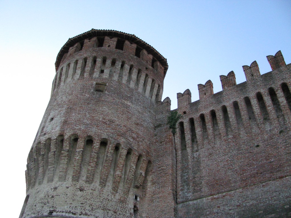 L’ipotesi è quindi che la torre cilindrica non sia altro che l’estensione del torrione fatto costruire qualche anno prima e che, invece di essere abbattuto, è stato inglobato nelle possenti cortine murarie della nuova rocca.