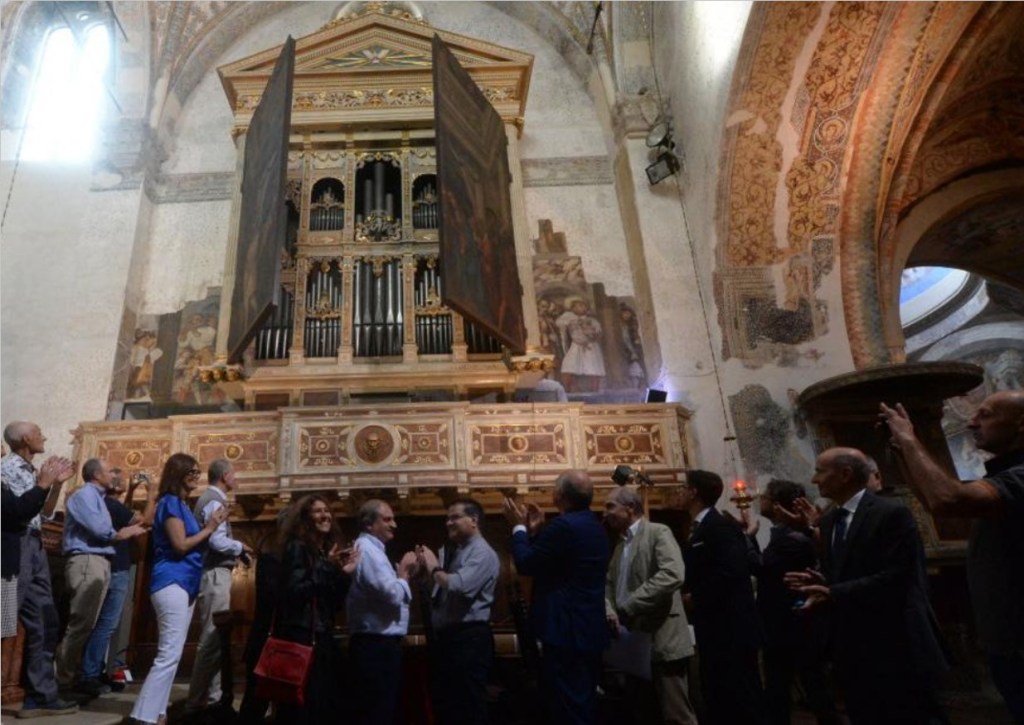 Alla presenza delle massime autorità religiose, politiche, associative e culturali, Vescovo e Sindaca di BS compresi, è stato dato il giusto tributo al restauro del gigantesco complesso dell’organo cinquecentesco dell’Antegnati… e già sappiamo che il protagonista assoluto di questo intervento è stato il nostro Amico della Rocca restauratore arch. Paolo Mariani: il suo restauro ha riguardato le 4 grandiose tele del Romanino, la balaustra, la raffinatissima cassa realizzata dal Piantavigna, e i preziosi affreschi, da lui stesso scoperti, sulle pareti ai lati dell’organo, sempre del Romanino.