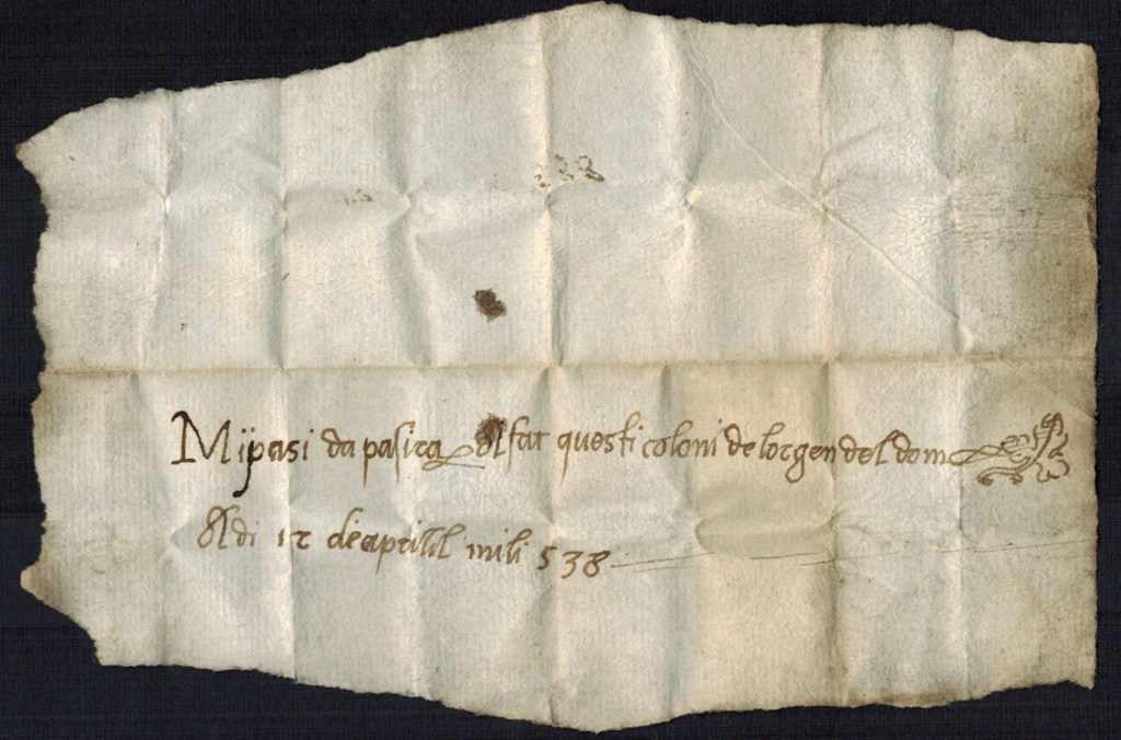 Mi sembra di vederlo Pasì, in quel 12 aprile del 1538, mentre ripiega con cura il suo foglietto e, tra modestia e segretezza, lo nasconde nella base del suo pilastro, come a volerlo imbucare in un tenue presagio da soffiare verso i secoli a venire; vorrei ringraziarlo e, da artigiani a artigiano, assicurarlo che il messaggio è giunto a destinazione e che tutti noi abbiamo cercato di raccoglierlo e di onorarlo al massimo delle nostre possibilità. Grazie Pasì!